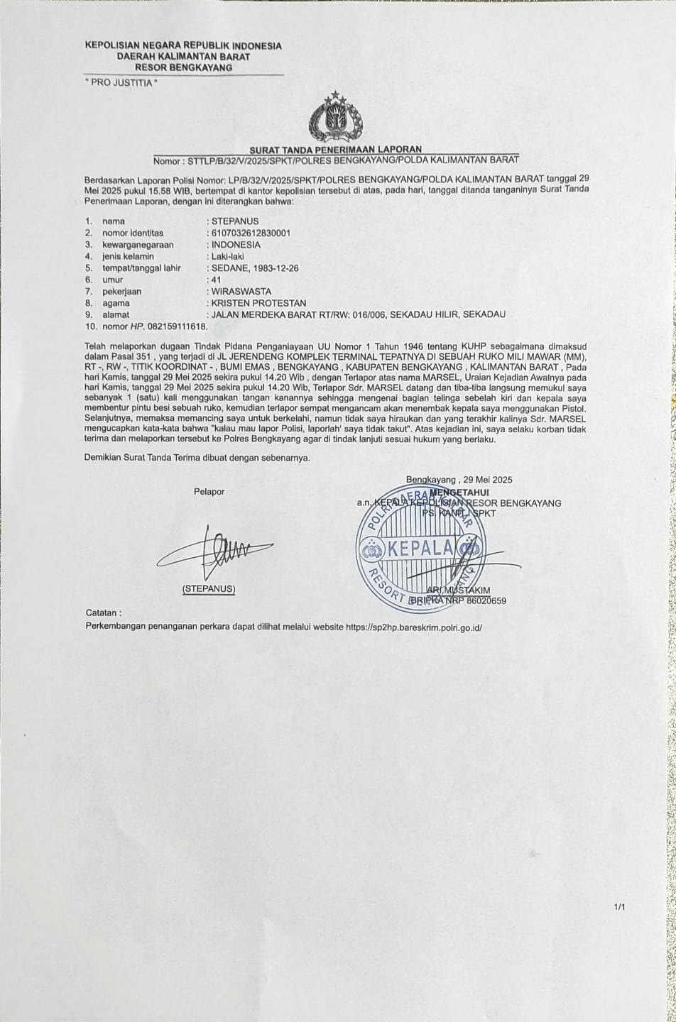 Mediaberitapantau.web.id – Pontianak, 30 Mei 2025 — Sejumlah aktivis reformasi 1998, tokoh nasional, dan pegiat profesi jurnalis menyatakan keprihatinan mendalam serta mengutuk keras tindakan penganiayaan yang menimpa Stepanus, Pemimpin Redaksi Kalimantan Pos dan CEO media tersebut. Insiden kekerasan terjadi pada 29 Mei 2025 di area Terminal Bengkayang, Kabupaten Bengkayang, Kalimantan Barat.