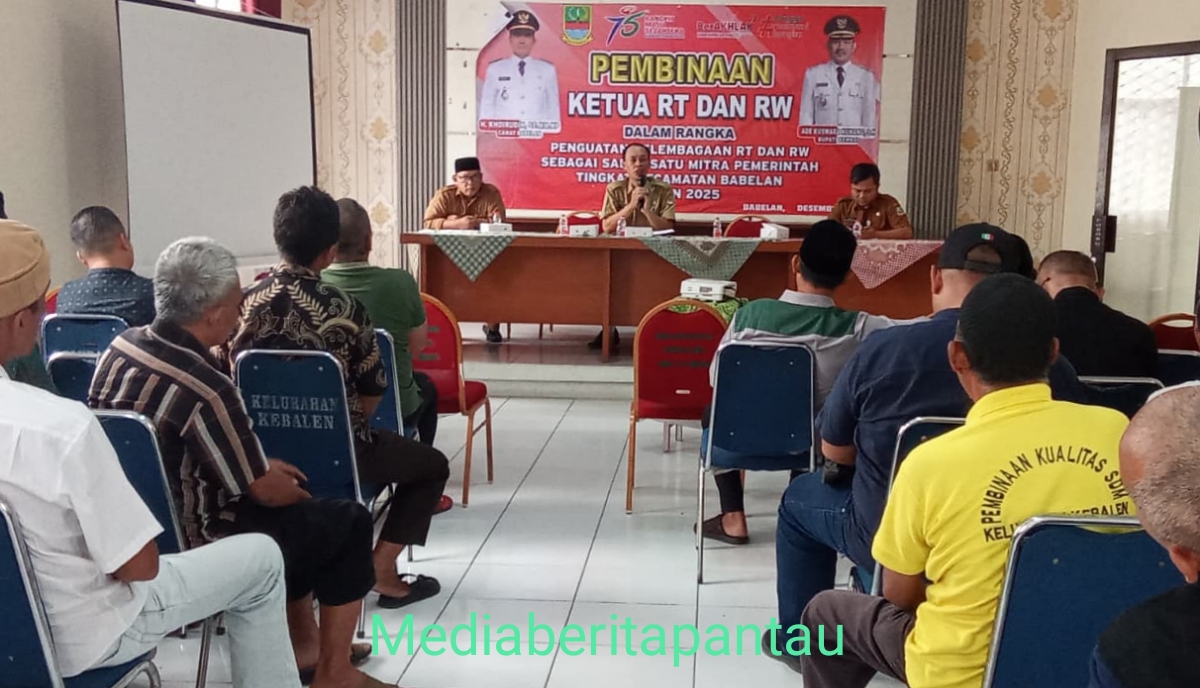 Mediaberitapantau.web.id, Babelan, Bekasi ~ Dalam rangka penguatan kelembagaan RT dan RW sebagai mitra strategis pemerintah, Kecamatan Babelan menggelar kegiatan pembinaan bagi para ketua RT dan RW di Kelurahan Kebalen pada Selasa (9/12/2025). Kegiatan ini diikuti oleh 56 peserta yang terdiri dari unsur RT dan RW.