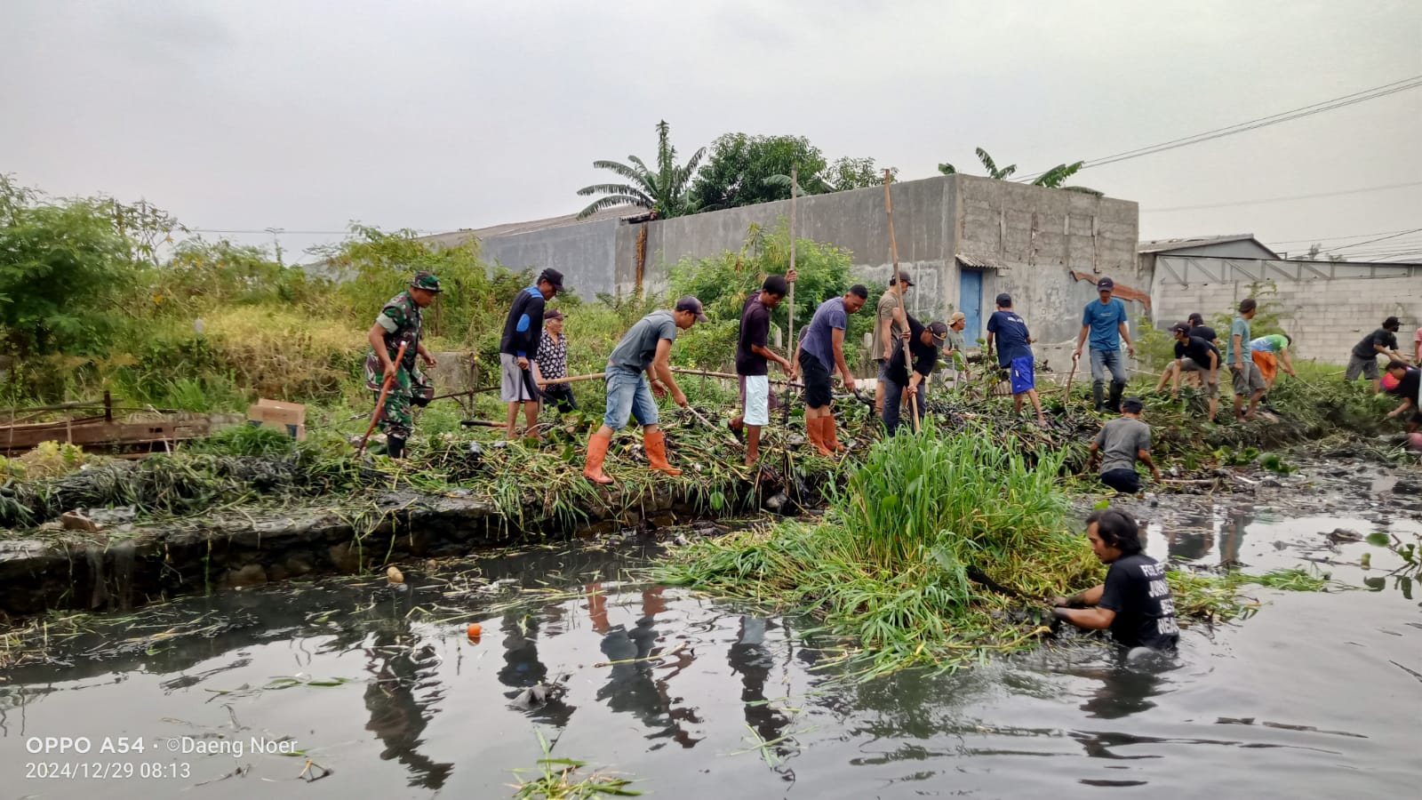 MEDIABERITAPANTAU, BABELAN ~ Dalam rangka mengantisipasi terjadinya banjir dimusim penghujan, Warga Desa Kedung Pengawas, khususnya wilayah RT. 002 RW. 01, Kecamatan Babelan, Kabupaten Bekasi, melaksanakan kerja bakti membersihkan sampah di kali irigasi yang melintasi pemukiman warga, pada Minggu pagi (29/12/2024).