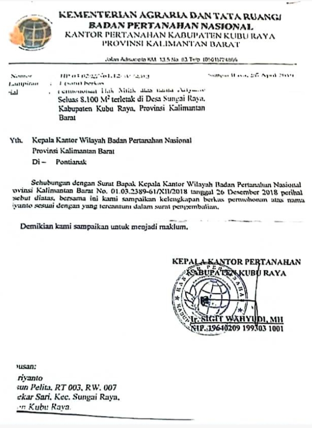 2. BARANG BUKTI BERUPA SURAT-SURAT YANG DIANGGAP PALSU OLEH JAKSA PENUNTUT UMUM ADALAH SURAT-SURAT HASIL PERBAIKAN ADMINISTRASI SESUAI PROSEDUR KARENA TELAH MENGIKUTI ARAHAN DAN PETUNJUK PIHAK BPN SAAT ITU, yang dibuktikan dengan adanya surat dari Kanwil BPN Prov. Kalbar No : HP.01.03/238G-61/XII/2018 tanggal 26 Desember 2018 ttg permintaan perbaikan berkas an. Ariyanto dan surat dari Kantor BPN Kab. Kubu Raya No : HP.03.02/266.161.12/IV/2019 tanggal 26 April 2019 ttg pengiriman berkas perbaikan an. Ariyanto.