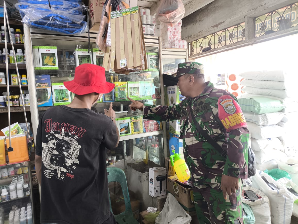 Pengecekan yang dilakukan oleh Babinsa di kios pertanian guna menjaga ketersediaan pupuk dan obat-obatan pertanian bagi para petani.Ini merupakan bagian dari pendampingan dan upaya khusus dalam program ketahanan pangan nasional. Hal tersebut dilakukan dengan pengecekan pendistribusian pupuk bersubsidi melalui kios pupuk pertanian yang ada di wilayah Kecamatan Nisam.