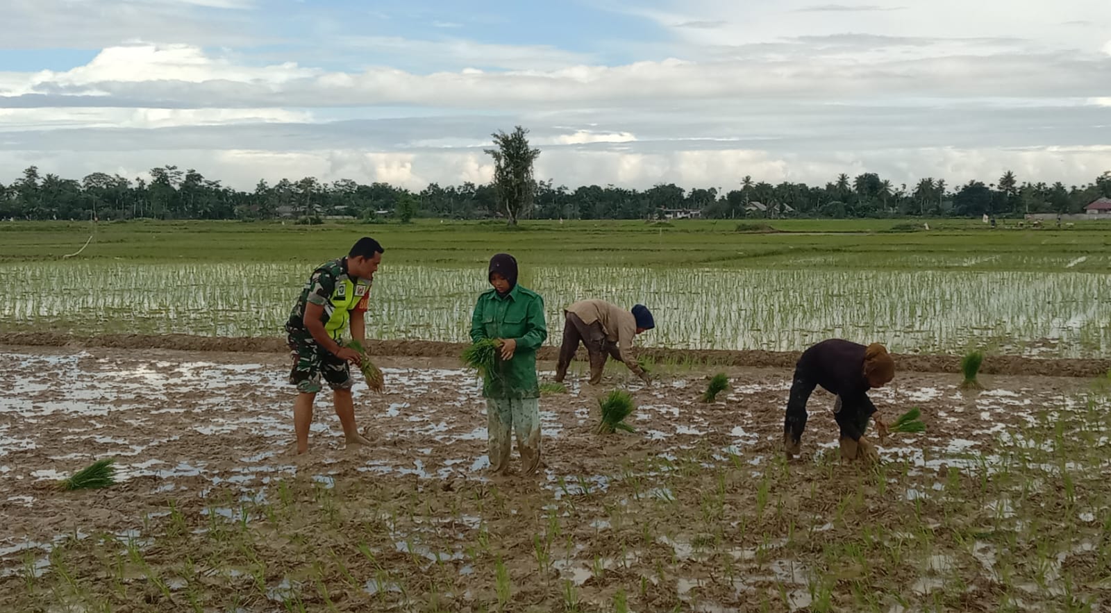 “Kegiatan pendampingan kepada kelompok tani merupakan wujud kemanunggalan TNI-Rakyat. Pendampingan ini sudah merupakan tugas kami sebagai aparatur kewilayahan membantu para petani dalam hal pertanian, seperti kegiatan tanam padi yang sedang saya kerjakan,” kata Serda Juliandi disela sela waktu istirahatnya.