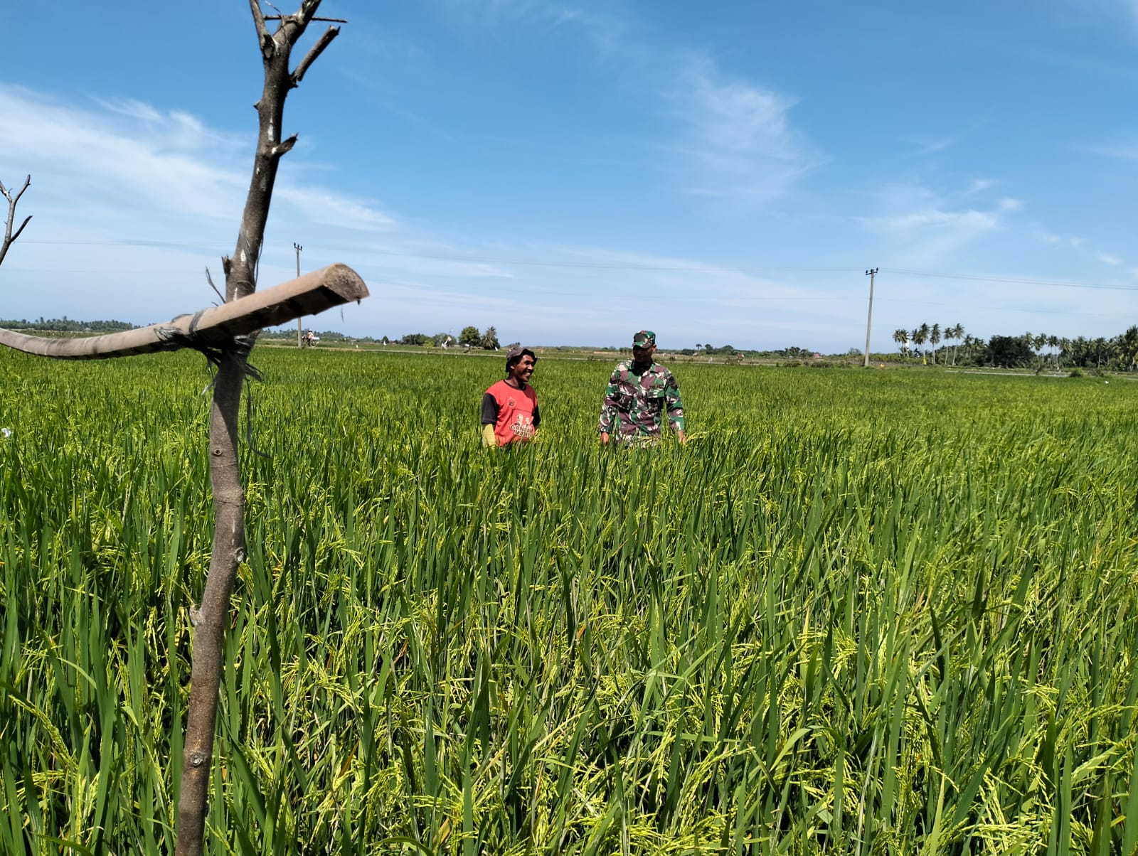 Dalam hal ini Babinsa Koramil 05/Stb Sertu Budi Sutrisno melaksanakan pendampingan pengecekan padi yang telah ditanam akan mendekati masa panen, dengan sekaligus memperhatikan air yang mengairi sawah.