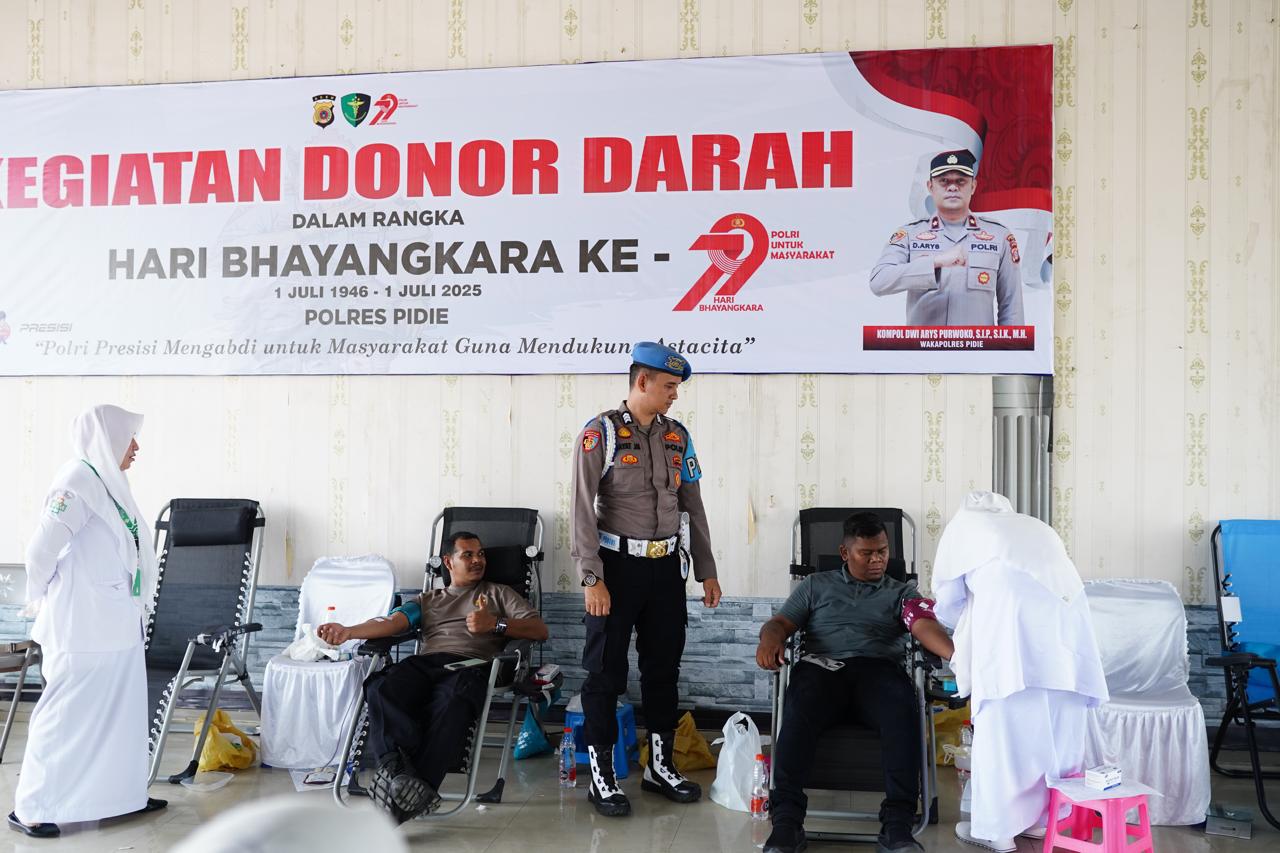 “Kegiatan donor darah ini bukan hanya rangkaian seremoni HUT Bhayangkara, tetapi juga wujud nyata pengabdian kami kepada masyarakat. Semangat kebersamaan dan kepedulian sosial menjadi nilai utama yang ingin kami tanamkan,” ujar Wakapolres Pidie