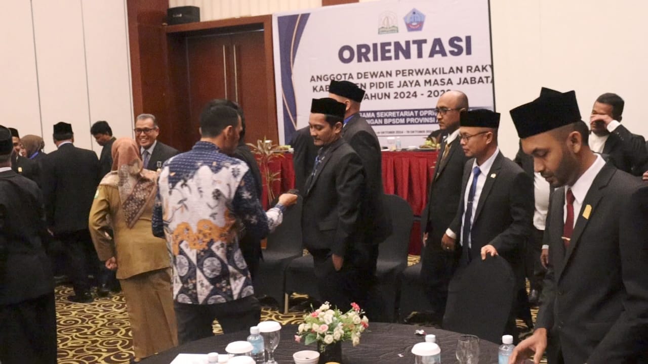 Acara Orientasi yang berlangsung di Hermes Palace Hotel Banda Aceh ikut dihadiri ketua / wakil ketua dan seluruh anggota DPRK yang dilantik beberapa waktu lalu, dibuka oleh Asisten 1 Setdakab Pidie Jaya, Said Abdullah, turut dihadari kepala BPSDM Propinsi Aceh.Dr.Heni Triwahyuningsih.