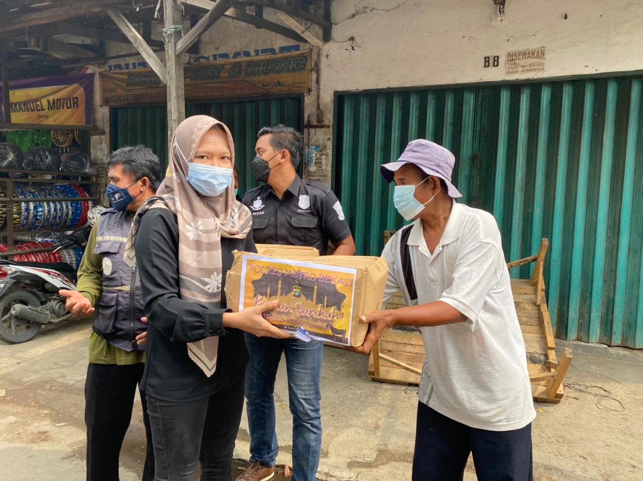 Diantara bantuan sembako yang di berikan petugas satreskrim polres metro Bekasi yaitu warga yang tinggal di pemukiman kumuh, para tukang becak,pemulung,dan pedagang kaki lima, yang memang berhak mendapatkan bantuan.