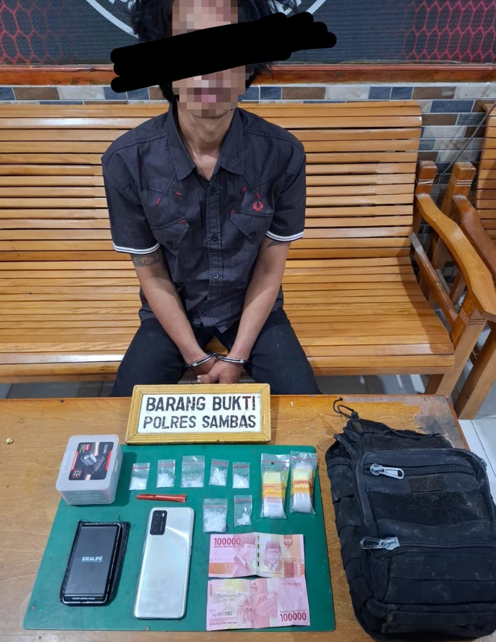 Kapolres Sambas, AKBP Sugiyatmo, S.I.K., melalui Kasatres Narkoba Iptu Agus Trimarsono S.H., menjelaskan bahwa Satresnarkoba Polres Sambas langsung menindaklanjuti informasi tersebut dengan melakukan penyelidikan. Petugas kemudian melakukan pemesanan narkoba secara terselubung yang mengarah pada kesepakatan transaksi di rumah kosong di wilayah kecamatan Subah, begitu sampai di lokasi petugas mendapati tersangka telah berada di tempat tersebut dan segera melakukan penangkapan.