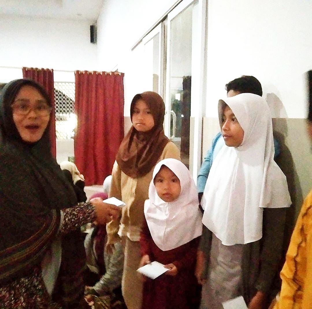 Sementara itu, pemberian tali asih dari Ibu Evi Shinta, di serahkan oleh Evi Susanti dan di ikuti oleh Bapak Agus Kurniawan beserta staf lainnya kepada 26 anak yatim dan kepada 12 janda jompo, yang di hadiri oleh Ketua DKM Al-Hidayah, H. Deden Sutisna dan para jamaah Masjid.
