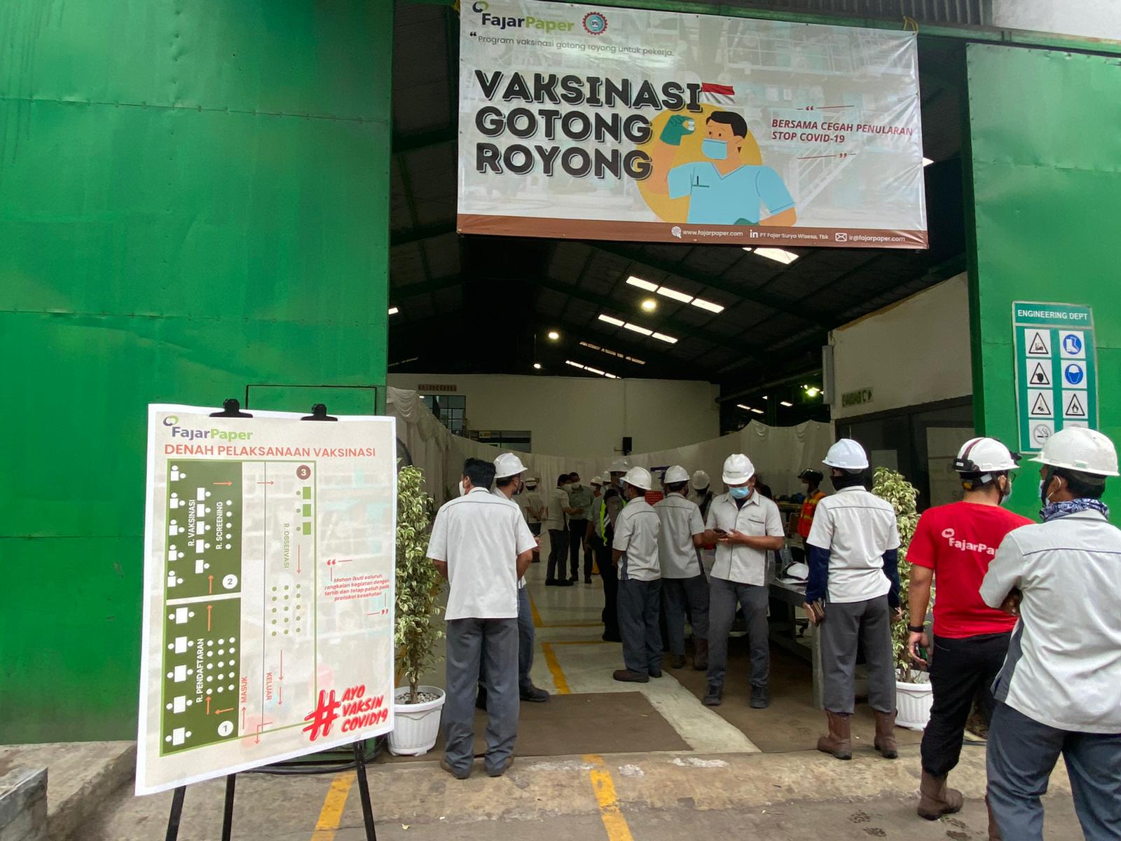 Beritapantau.online l bekasi-Sebagai salah satu produsen kertas kemasan terkemuka di Indonesia, PT Fajar Surya Wisesa Tbk atau FajarPaper melalui kerjasama dengan Kamar Dagang dan Industri Indonesia, dan PT Bio Farma (Persero) (“Bio Farma”) untuk menyelenggarakan program Vaksinasi Gotong Royong (“Vaksinasi”) tahap pertama dalam rangka penanggulangan pandemik Covid-19. Kegiatan Vaksinasi yang dilakukan bersama RS Siloam Lippo Cikarang ini diadakan pada hari Rabu, tanggal 14 Juli 2021 untuk 500 karyawan dari FajarPaper, karyawan tersebut telah menerima Vaksin Sinopharm (“Vaksin”) dari total 1,000 Vaksin yang telah dikirimkan oleh Bio Farma. Jumlah ini diupayakan terus bertambah pada tahap pengiriman Vaksin berikutnya, mengingat Manajemen FajarPaper menargetkan semua karyawan yang berjumlah sekitar 2.800 pekerja dapat menerima Vaksin dengan segera agar kesehatan pekerja terhadap virus Covid-19 dapat terjaga.