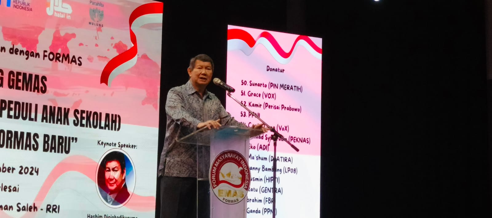 Dalam pesannya Ketua Dewan Pembina FORMAS (Forum Masyarakat Indonesia Emas) Hashim Djojohadikusumo, beliau menegaskan, “Bahwa Gerakan Masyarakat Peduli Anak Sekolah sebagai upaya untuk meningkatkan perhatian dan dukungan terhadap pendidikan anak-anak di Indonesia.