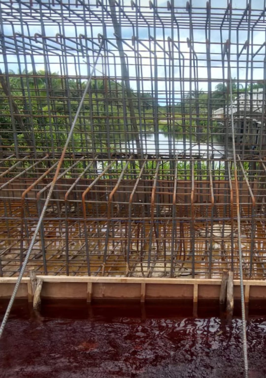 Salah satu warga yang enggan disebutkan namanya menyatakan, “Tidak ada aktivitas di lapangan. Tulangan besi abutmen berkarat, cetakan beton rusak, dan lantai kerja retak di berbagai tempat. Belum ada pengecoran sama sekali.