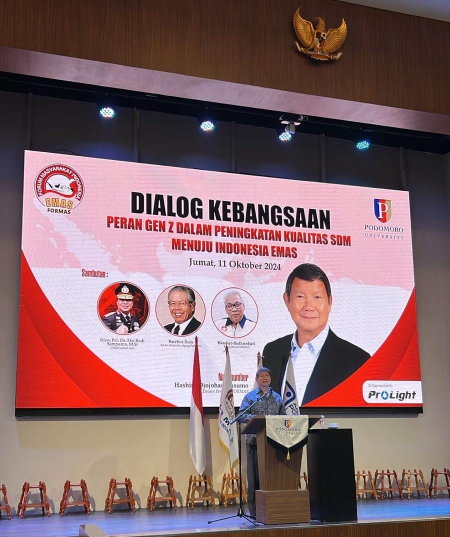 Mediaberitapantau.online JAKARTA – Ketua Dewan Pembina Forum Masyarakat Indonesia Emas (Formas), Hashim Djojohadikusumo, menyebut Generasi Z (Gen Z), yang lahir setelah 1997, memiliki potensi besar dalam menciptakan inovasi yang dapat mengubah peradaban dunia. Dalam dialog kebangsaan bertajuk ‘Peran Gen Z dalam Peningkatan SDM Menuju Indonesia Emas’ di Universitas Podomoro, Jakarta Barat, Jumat (10/11/2024), Hashim menyampaikan bahwa Gen Z harus menjadi generasi yang produktif untuk memperbaiki kualitas bangsa.