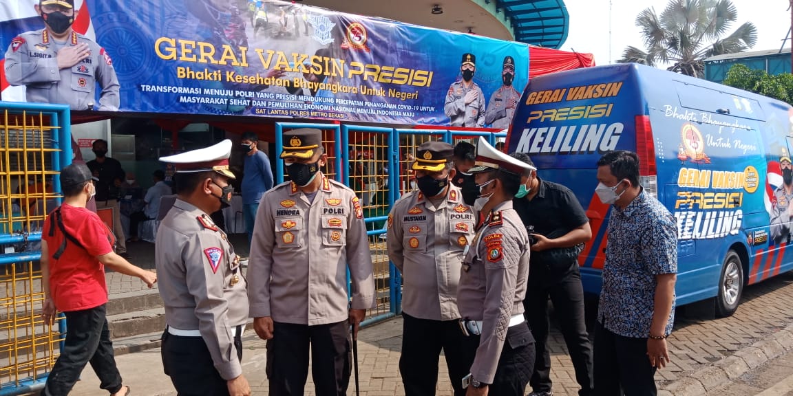Sementara itu Kasat lantas polres metro Bekasi AKBP Argo Wiyono, mengaku giat gerai vaksinasi Keliling yang di lakukan dengan bekerja sama tim relawan dan tenaga kesehatan,bertujuan untuk mencapai target satu juta vaksinasi perhari untuk warga masyarakat Indonesia yang memang sudah di canangkan presiden republik indonesia.