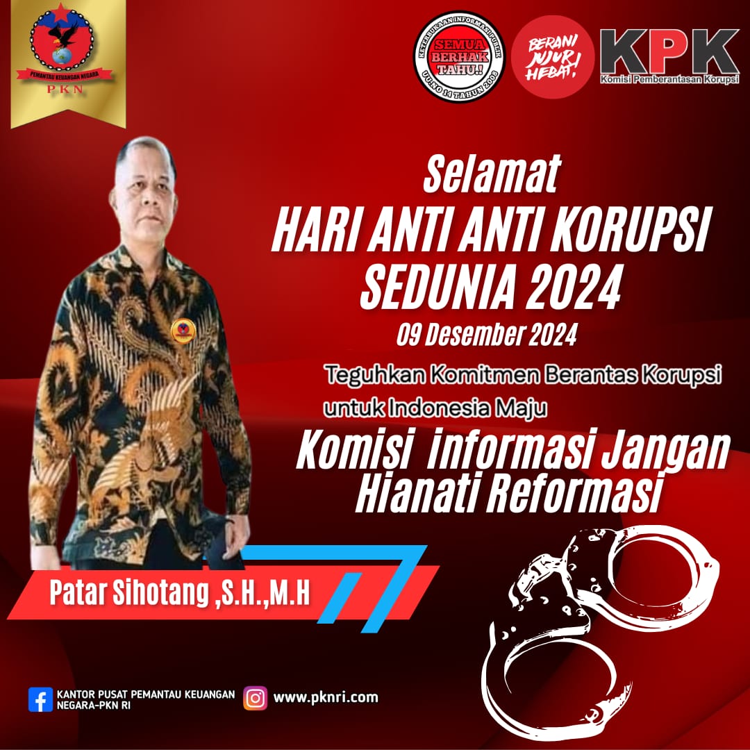 Mediaberitapantau.online BEKASI — Hari Anti Korupsi Sedunia yang diperingati setiap tanggal 9 Desember menjadi momen penting untuk merefleksikan komitmen bangsa dalam melawan korupsi. Dalam peringatan tahun ini, Pemantau Keuangan Negara (PKN) mengambil tema: “Hari Anti Korupsi Sedunia, Sebuah Momentum Tercapainya Transparansi dan Keterbukaan Informasi di Indonesia.”