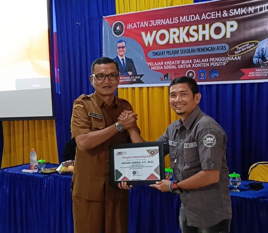 Kepala SMK Negeri 1 Idi, Antoni Samad, S.T, M.Si dalam sambutannya, menyampaikan apresiasi atas terselenggaranya kegiatan ini kepada Ikatan Jurnalis Muda Aceh (IJMA). “Kami berharap para siswa dapat menerapkan ilmu yang didapat untuk menjadi generasi yang cerdas digital dan bijak bermedia sosial,” katanya.