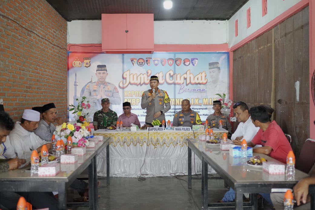 Media Berita Pantau Sigli – Kapolres Pidie AKBP Jaka Mulyana, SIK, MIK bersama jajaran Polres Pidie mengadakan kegiatan Jum`at Curhat dan Bhakti Sosial di Kecamatan Muara Tiga Kabupaten Pidie.