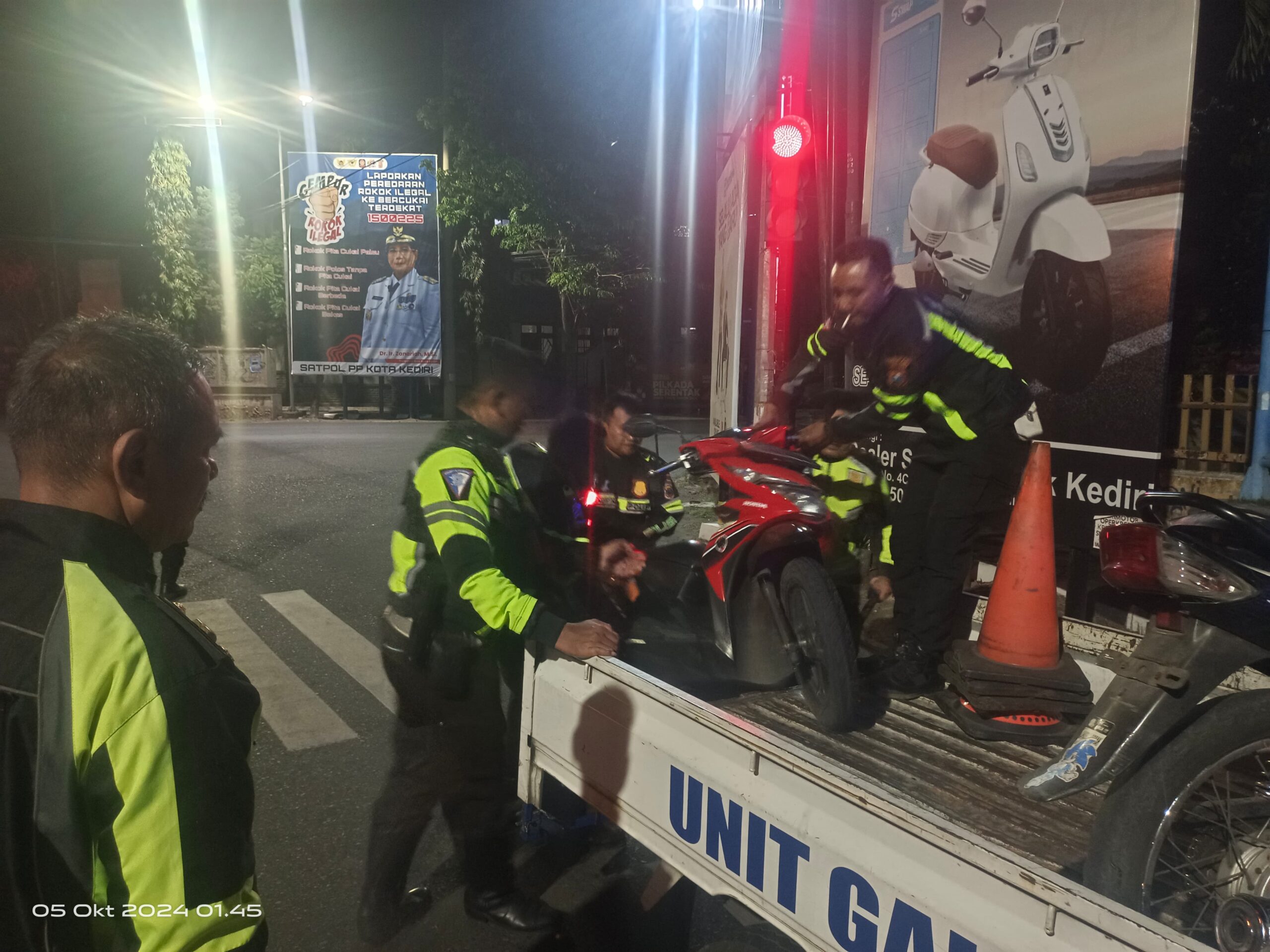 Bermula, saat Kasatlantas bersama Kanit Turjawali dan anggota melakukan patroli huntyng system, tiba – tiba saat melintasi simpang empat Jalan Veteran Kota Kediri pihaknya berpapasan dengan belasan remaja yang sedang mengendarai kendaraan motor secara ugal – ugalan, dan melakukan bleyer – bleyer knalpot brong.