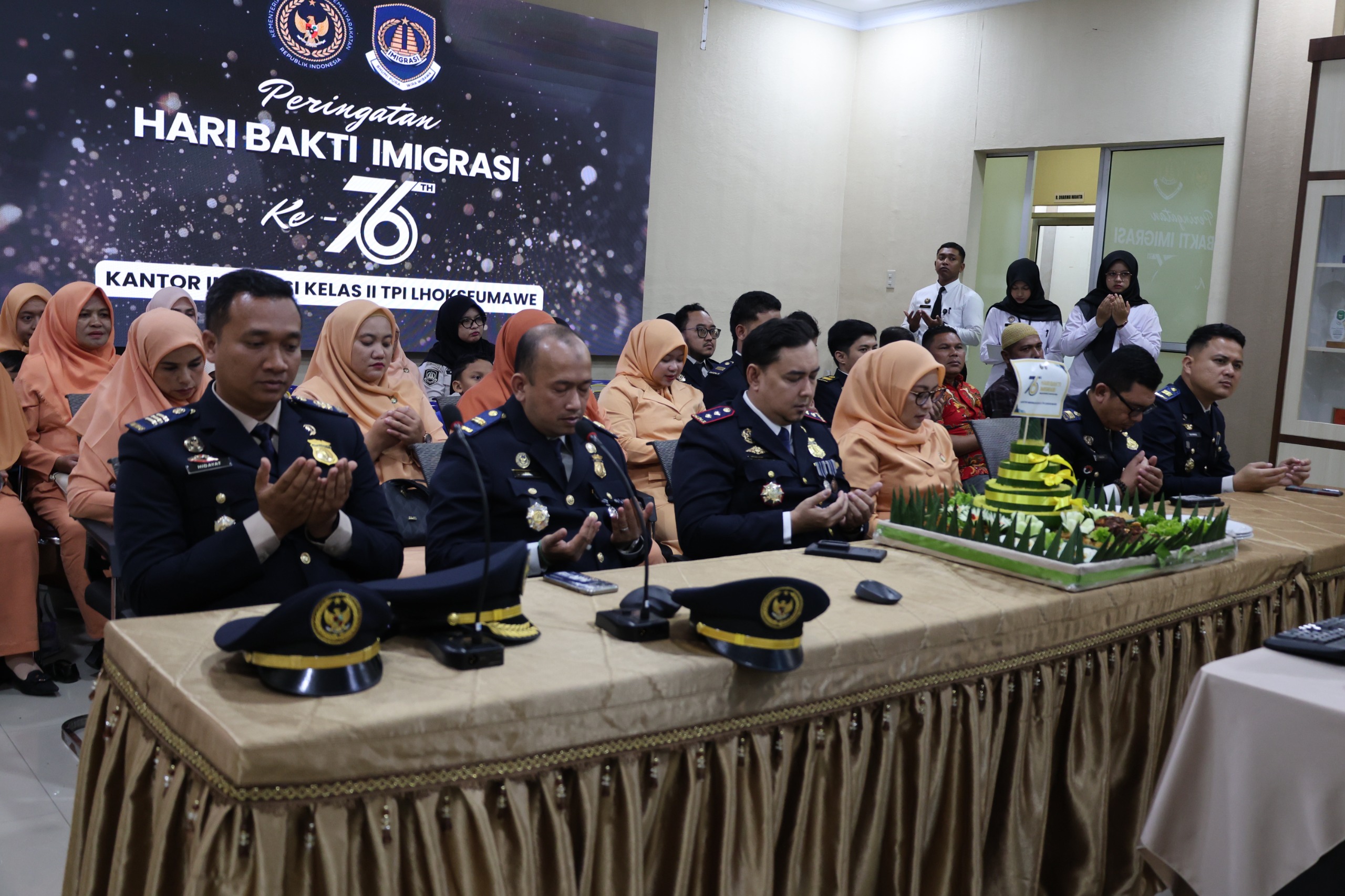 Rangkaian kegiatan diawali dengan doa bersama sebagai ungkapan rasa syukur kepada Tuhan Yang Maha Esa, kemudian dilanjutkan dengan pemotongan tumpeng sebagai simbol harapan akan keberlanjutan pengabdian, kebersamaan, serta keberkahan dalam pelaksanaan tugas dan fungsi keimigrasian.