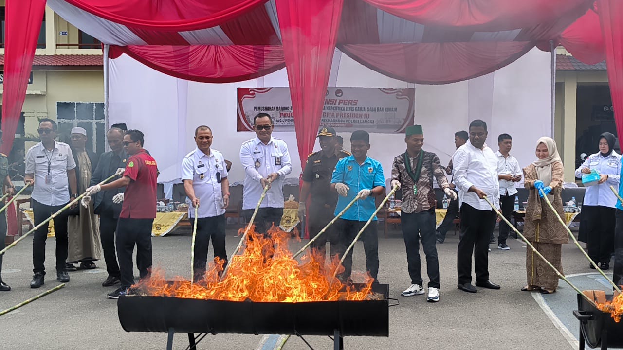 Pemusnahan ini dihadiri oleh Forkopimda Kota Langsa, tokoh masyarakat dan undangan lainnya.