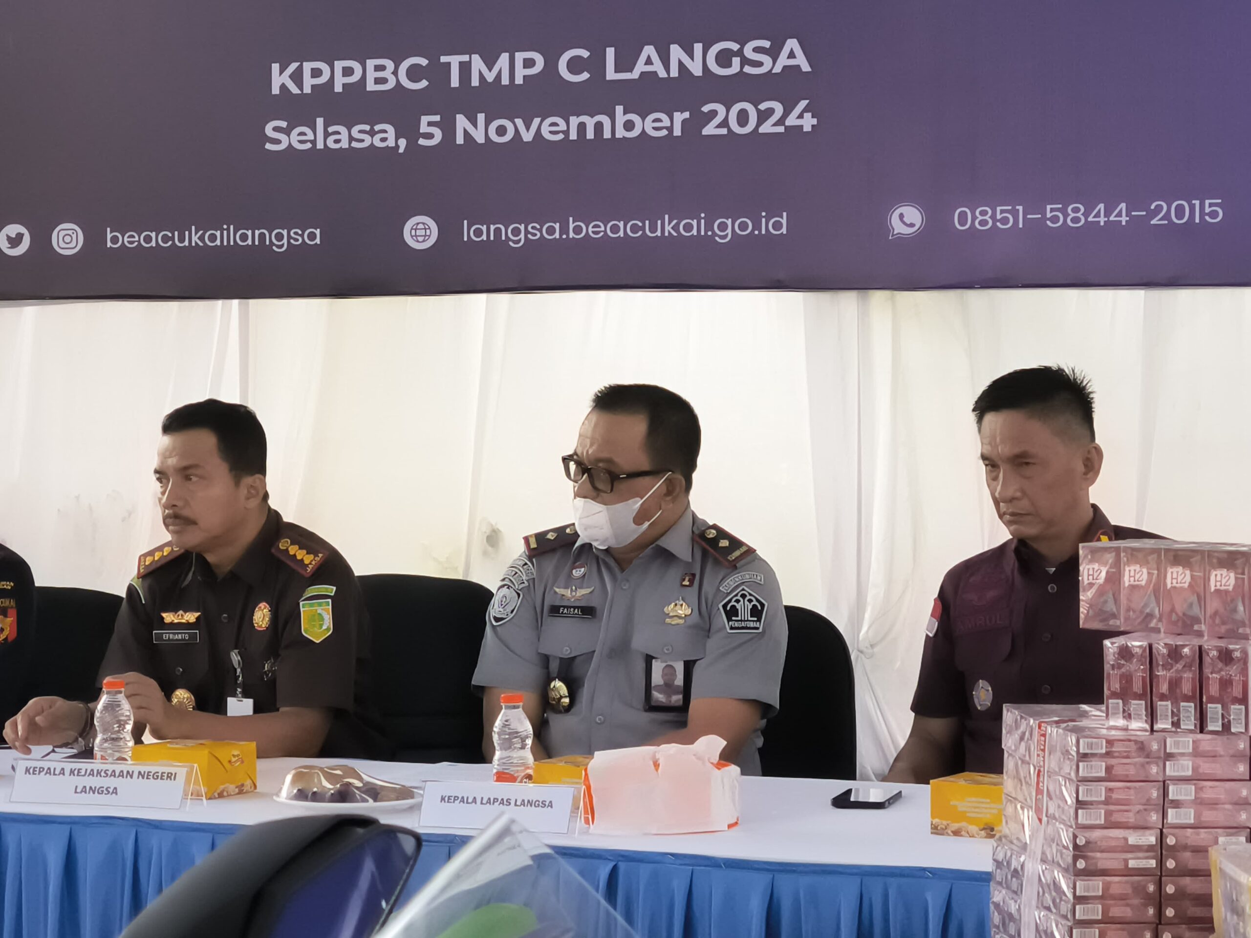 Cukai Langsa serta memperlihatkan Barang Bukti hasil penindakan Bea Cukai Langsa.