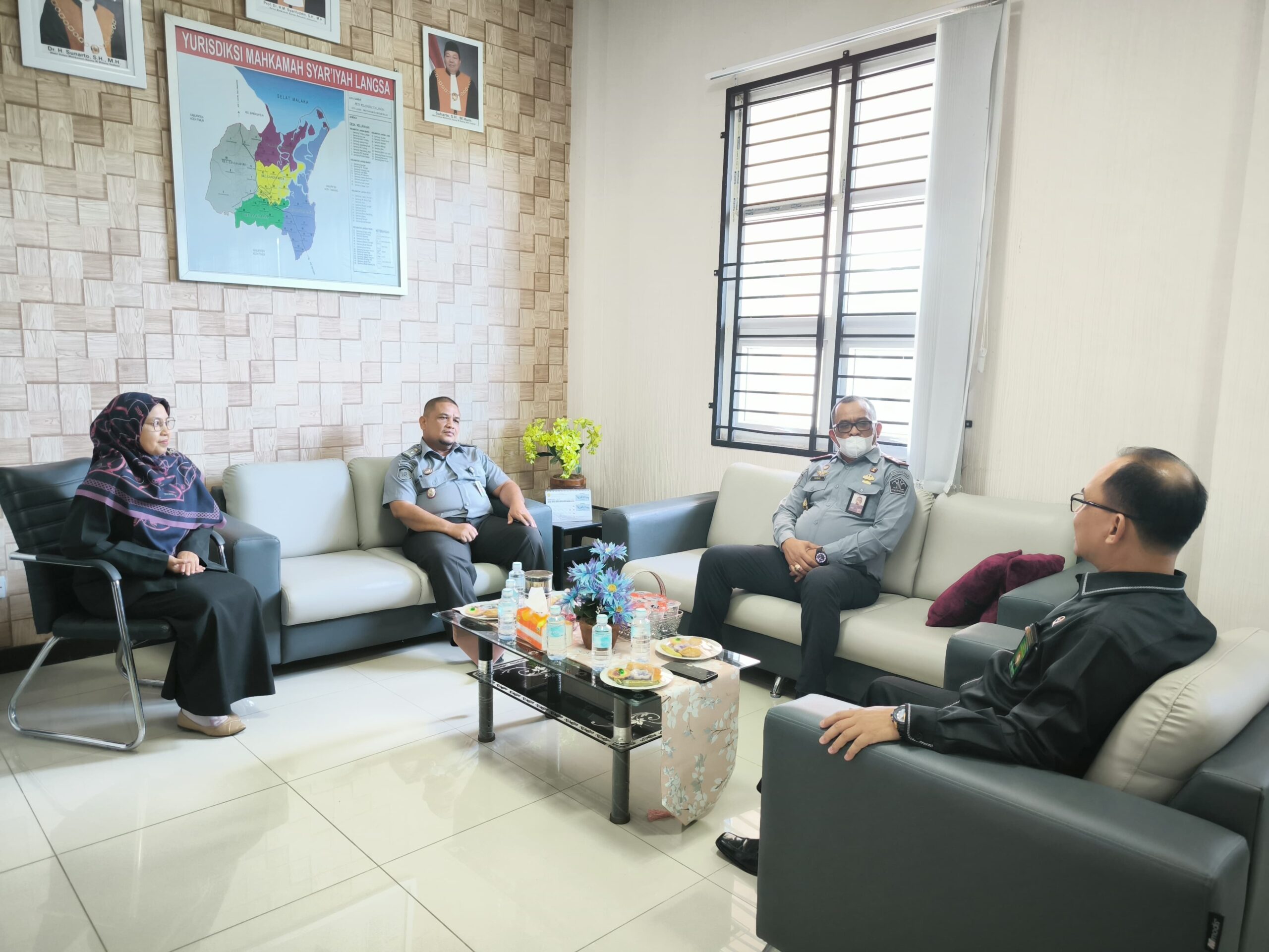 Kalapas mengucapkan terima kasih atas sambutan hangat yang di berikan oleh Ketua Mahkamah Syariah Langsa Ahmad Nazif Husainy didampingi Panitera Mahkamah Syariah Anny Suryani.