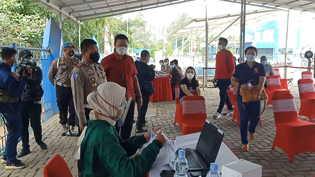 Beritapantau.online l Bekasi – Kantor Satuan Penyelenggara Administrasi (Satpas) SIM Polres Kabupaten Bekasi, memberikan vaksinasi gratis kepada para pemohon sebelum melakukan permohonan SIM di tempat tersebut(Jumat/02/07).