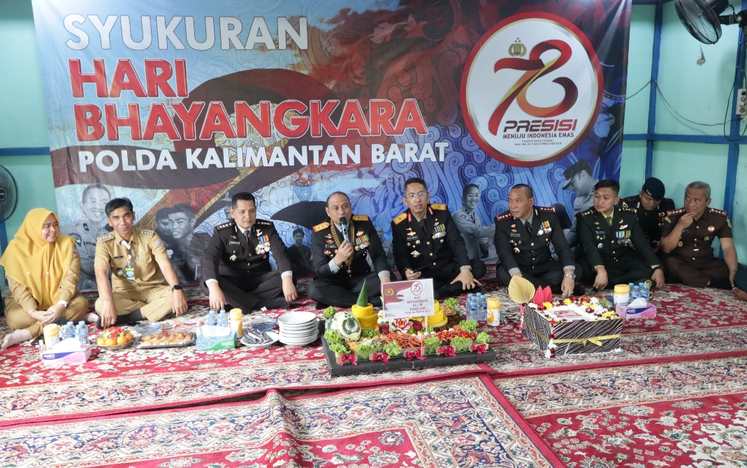 Upacara Peringatan Hari Bhayangkara Ke-78 dipimpin langsung oleh Kapolda Kalbar Irjen Pol Pipit Rismanto, S.I.K., M.H. Dengan tema “Polri Presisi Menuju Indonesia Emas, Transformasi Ekonomi Yang Inklusif dan Berkelanjutan”.