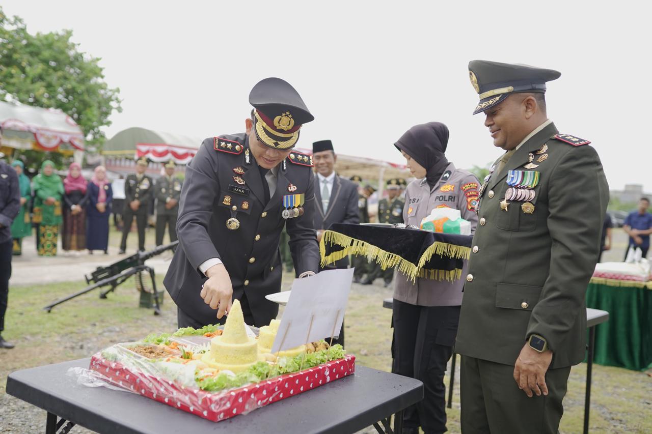 Selesai upacara memperingati HUT ke-79 TNI, Kapolres Pidie memberikan kejutan istimewa kepada TNI sebagai bentuk solidaritas dan sinergi antara TNI dan Polri.