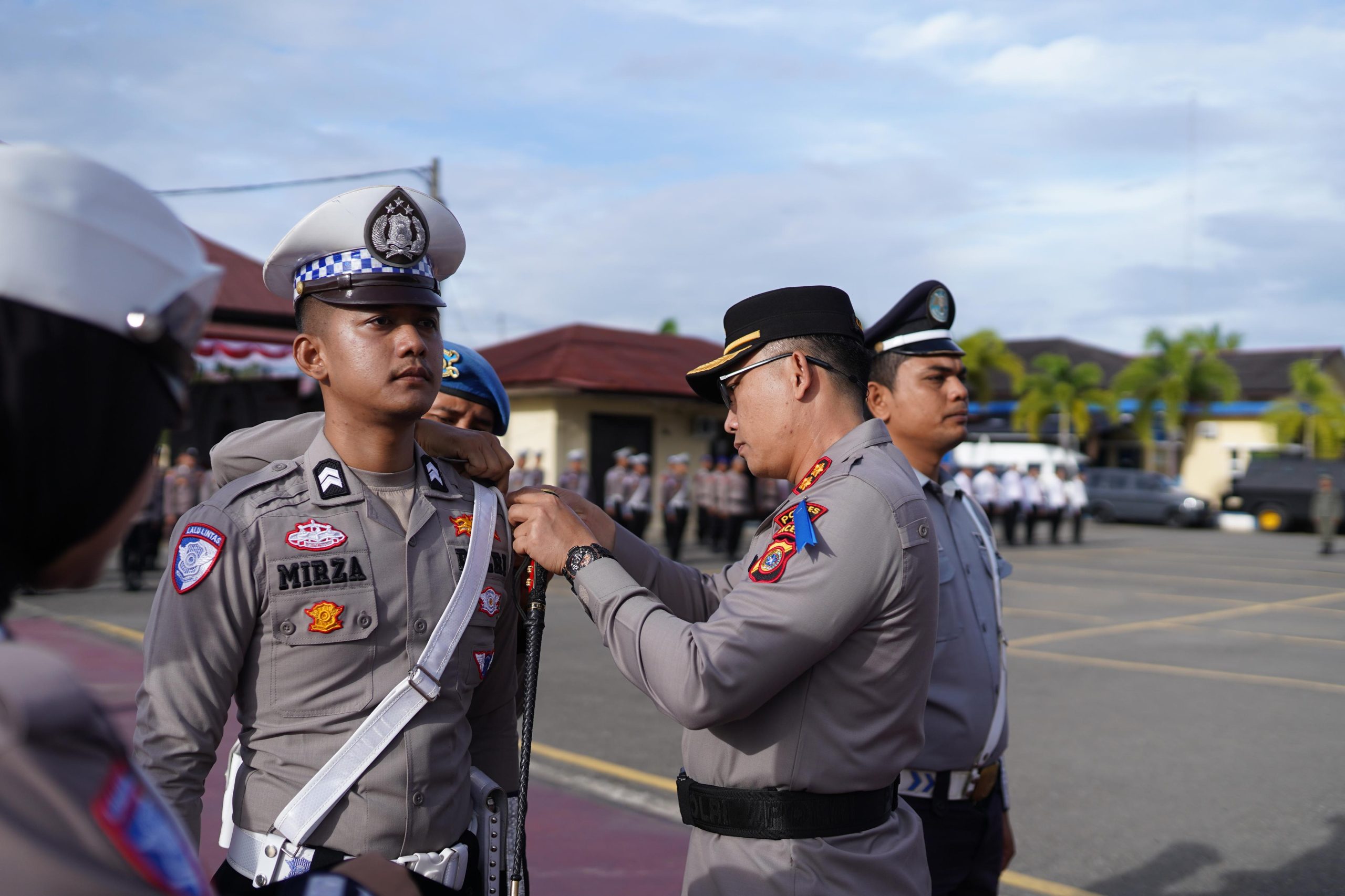 Kapolres Pidie AKBP Jaka Mulyana, SI.K, MIK, memimpin langsung apel tersebut yang turut dihadiri oleh Wakapolres, para pejabat utama Polres, unsur Forkopimda, serta perwakilan instansi terkait seperti TNI, Satpol PP, BPBD, dan Dinas Perhubungan.
