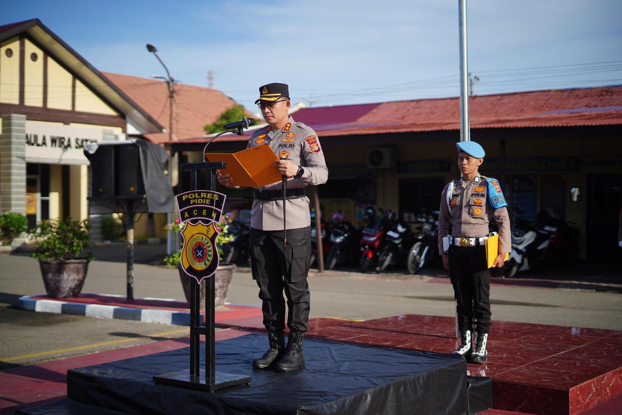 Dalam pelaksanaan ucara, Dihadiri Wakapolres, para pejabat utama, Kapolsek jajaran, personil Polres Pidie serta ASN,