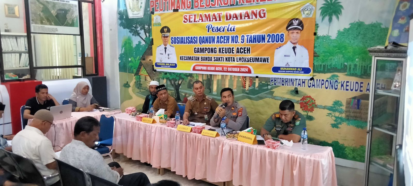 Media Berita Pantau Lhokseumawe – Kapolsek Banda Sakti, Iptu Zul Akbar, SE, bersama Danramil 16/Banda Sakti, Kapten Arm Junaidi, dan Camat Banda Sakti, Yuswardi SKM, MSM, menyelenggarakan sosialisasi mengenai Qanun Aceh No. 9 Tahun 2008 terkait 18 perkara yang dapat diselesaikan secara adat di gampong. Kegiatan ini berlangsung di Kantor Keuchik Keude Aceh, Kecamatan Banda Sakti, Kota Lhokseumawe, Selasa (22/10/2024) pukul 10.00 WIB.