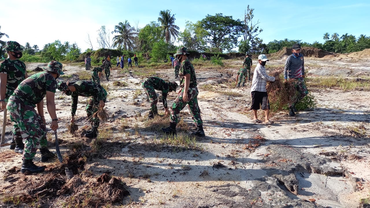 Beritapantau.online l NATUNA – Satuan TNI diwilayah Kabupaten Natuna bersama masyarakat mengadakan pragram Karya Bakti TNI penyiapan lahan seluas 21.779 meter persegi sebagai Tempat Pemakaman Umum (TPU) khusus Covid-19 yang berlokasi di TPU Batu Kapal – Senubing Kecamatan Bunguran Timur Kabupaten Natuna Kepulauan Riau, Selasa pagi (12/7/2021).