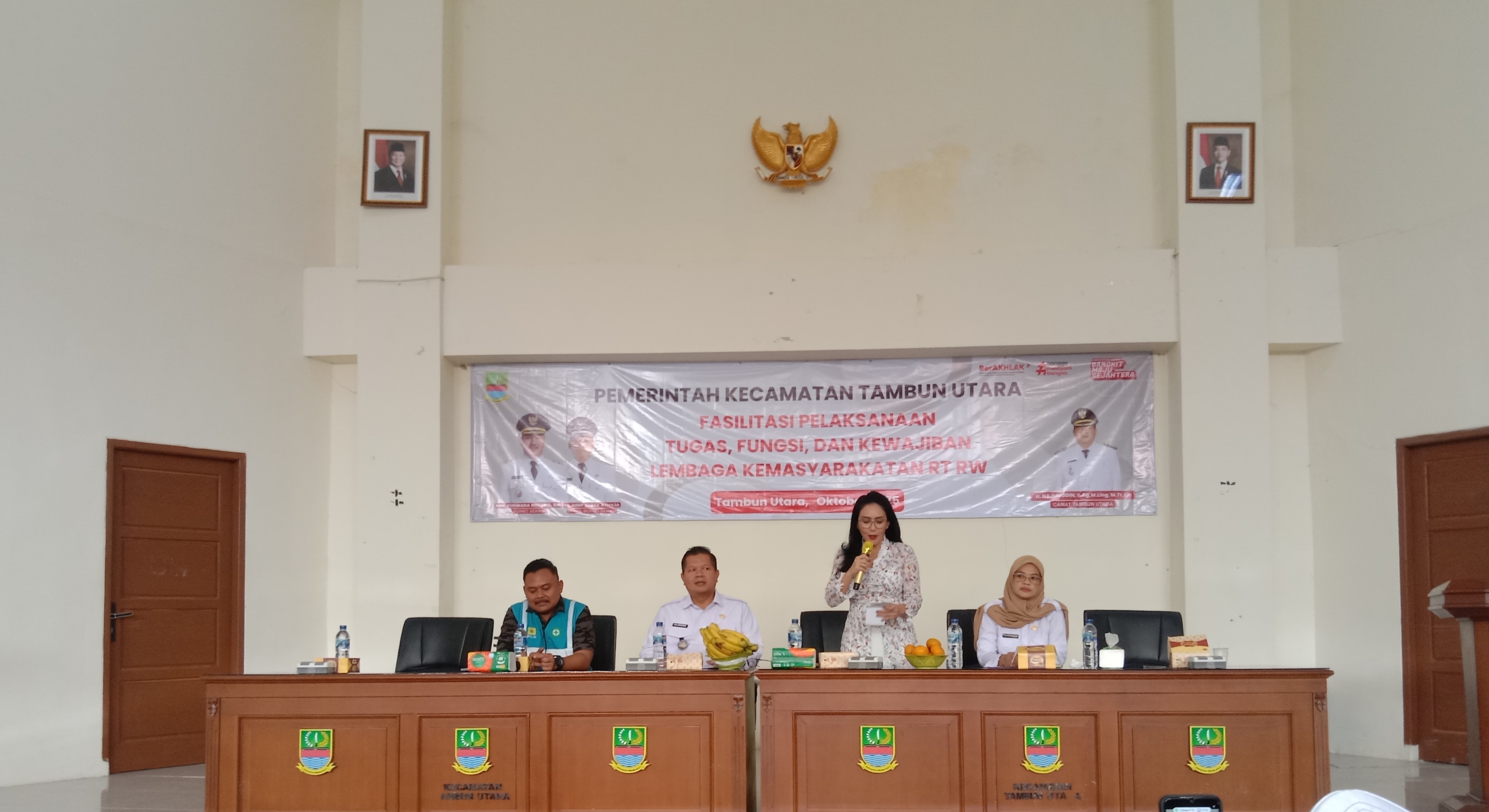 Mediaberitapantau.web.id, Bekasi ~ Pemerintah Kecamatan Tambun Utara menggelar kegiatan pembinaan RT dan RW dengan agenda ” Fasilitasi Pelaksanaan Tugas, Fungsi, serta Kewajiban Lembaga Kemasyarakatan RT dan RW’. Berlangsung di Gedung Serbaguna Kecamatan Tambun Utara, Kabupaten Bekasi, pada Rabu (15/10/2025).