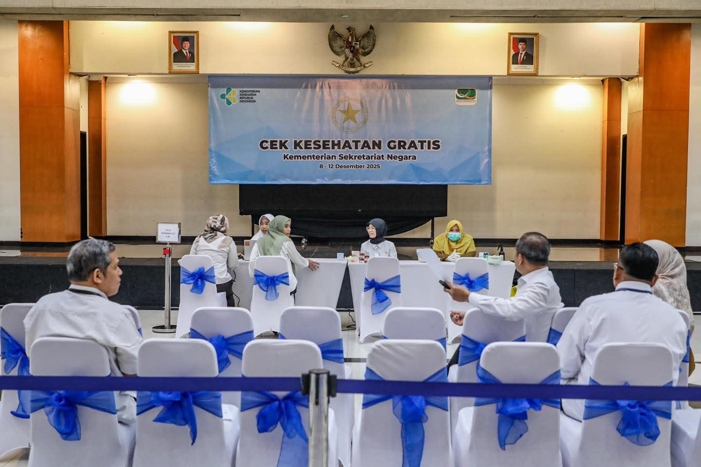 Mediaberitapantau.web.id JAKARTA — Kementerian Sekretariat Negara (Kemensetneg) bekerja sama dengan Kementerian Kesehatan (Kemenkes) menyelenggarakan Cek Kesehatan Gratis (CKG) bagi seluruh Pejabat dan Pegawai ASN serta Pegawai Non ASN (Tenaga Profesional, PPNPN, Outsourcing, Honorer) di lingkungan Kementerian Sekretariat Negara, tanggal 8-12 Desember 2025, di Gedung Krida Bhakti, Jakarta Pusat.