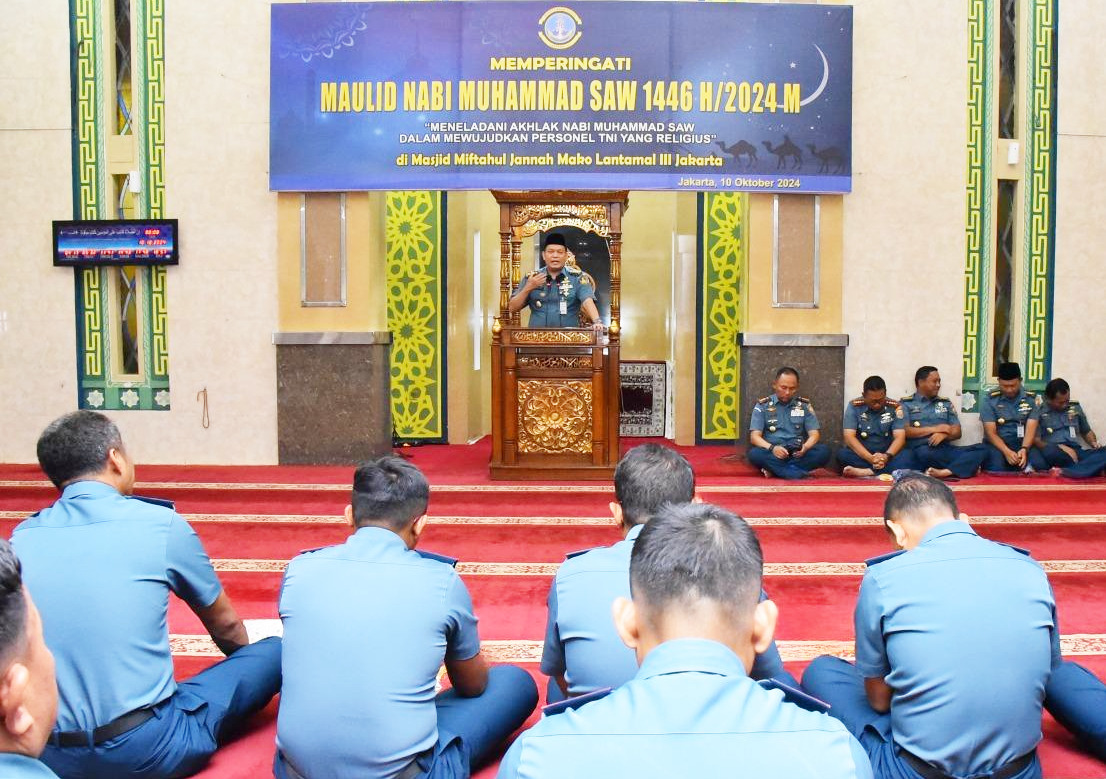 Mari bersama-sama kita teladani ajaran Nabi Muhammad SAW dalam setiap kegiatan dan etos kerja saat berdinas dan menjalankan tugas pokok sebagai prajurit dan PNS di lingkungan Lantamal III Jakarta. Terlebih lagi saat berdinas dan menjalankan tugas pokok sebagai prajurit dan PNS di lingkungan Lantamal III Jakarta.