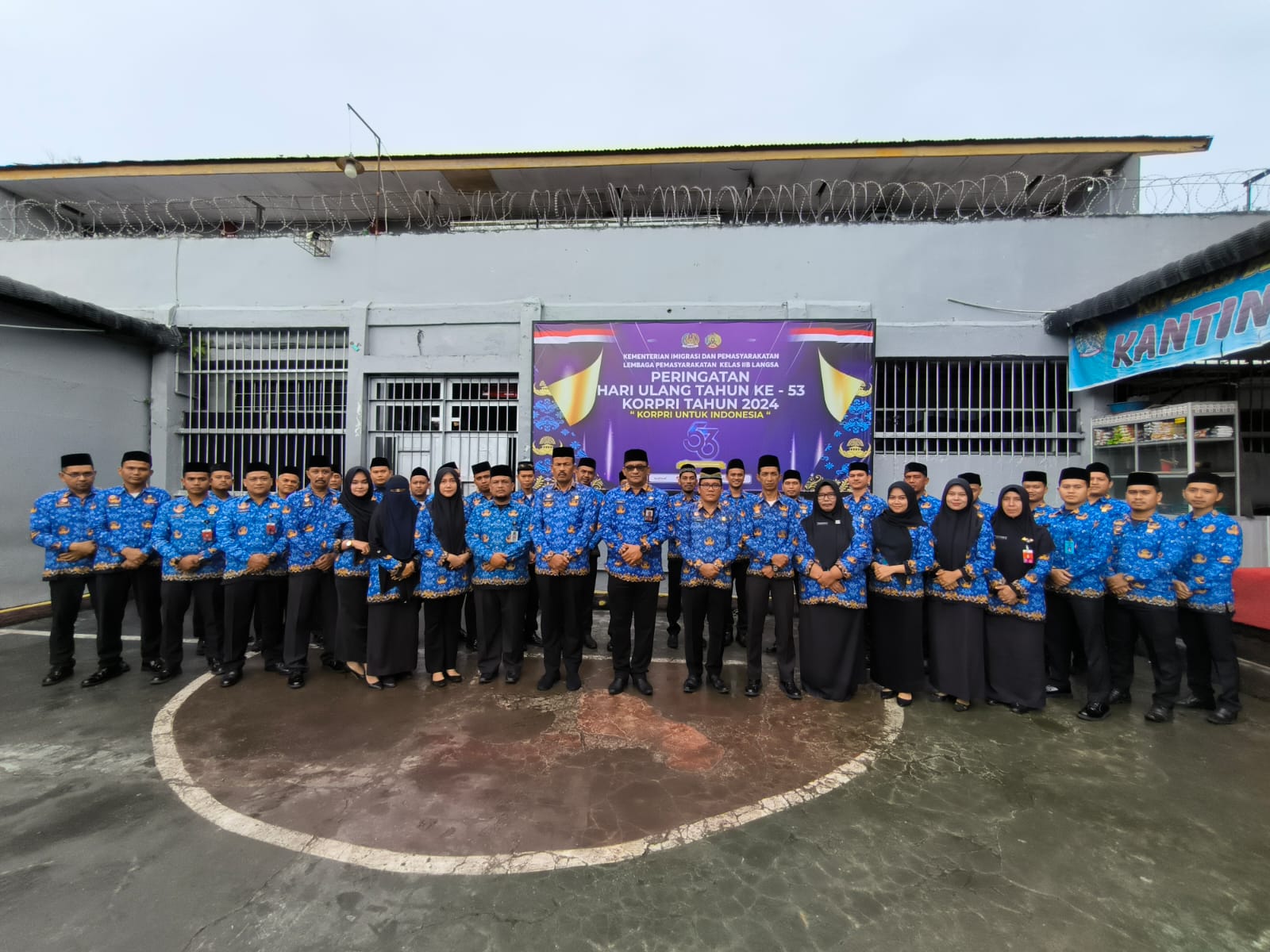 Media Berita Pantau Langsa – Dalam rangka memperingati HUT ke-53 yang jatuh pada tanggal 29 November 2024, Korps Pegawai Republik Indonesia (KORPRI) Lembaga Pemasyarakatan (Lapas) Kelas IIB Langsa menggelar upacara dengan tema “KORPRI untuk Indonesia”, upacara berlangsung di lapangan upacara Lapas. Jum’at (29/11).