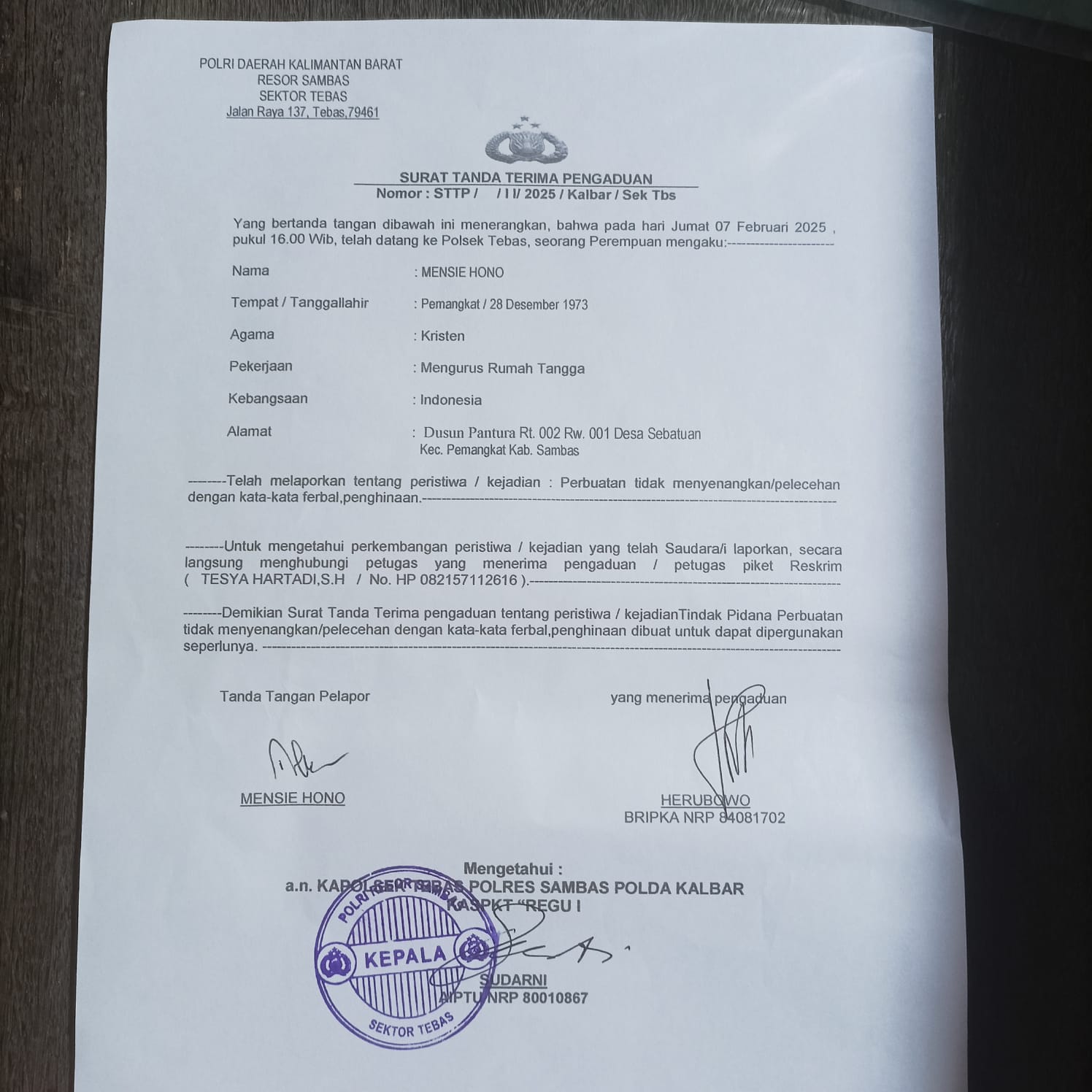Ia memastikan bahwa semua yang disampaikan bukan sekadar tuduhan. Ada saksi dan bukti rekaman yang mendukung pernyataannya. Sebagai bentuk perjuangan atas keadilan, ia telah melaporkan kejadian ini ke Polsek Tebas pada Jumat (07/02/2025) dan mendesak agar pihak berwenang memproses kasus ini secara hukum.