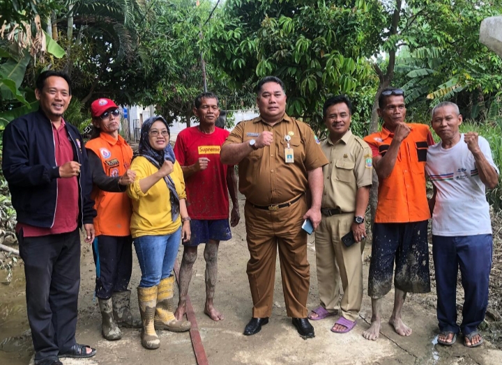 MEDIABERITAPANTAU, BABELAN ~ Didampingi Kasubag Perencanaan Kecamatan Babelan, Istiyar dan Ketua Karang Taruna Kecamatan Babelan, Syamlawi, Sekcam Babelan Edi Gunawan langsung mengunjungi lokasi banjir , yang berlokasi di Kelurahan Kebalen Kecamatan Babelan RT. 009 RW. 010.