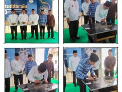 Selanjutnya, PJ. Bupati Bekasi bersama Lurah Khoirul Anwar, Sekcam Babelan Edi Gunawan, dan KH. Irfan Mas’ud, satu persatu menandatangani Prasasti pembangunan Mushollah Sa’adatuddarain.