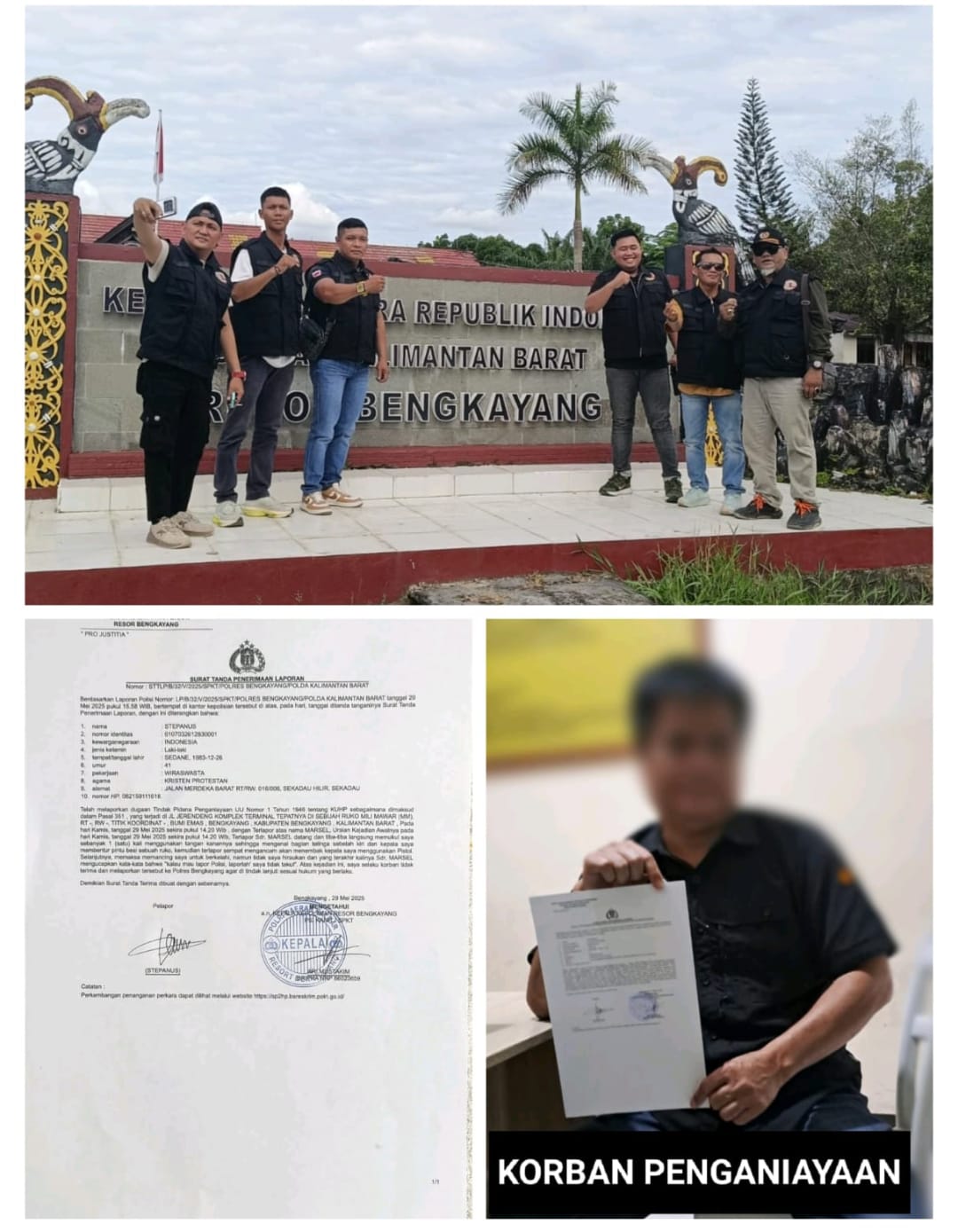 Berdasar kan laporan nomor: LP/B/32/2025/SPKT/POLRES BENGKAYANG POLDA KALBAR, tanggal 29 mei 2025 pukul 15:58 wib, sdra Stepanus telah melaporkan tindak penganiayaan UU no 1 tahun 1946 tentang KUHP sebagai di maksud dalam pasal 351 sesuai keterangan laporan juga bahwa korban di ancam mengunakan senpi, senjata api