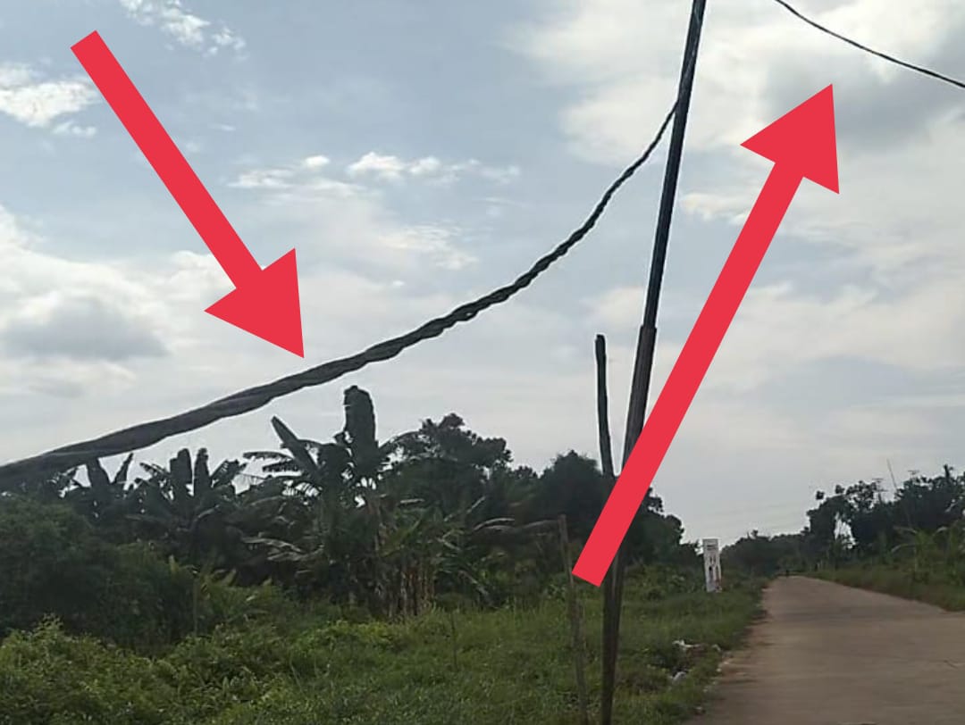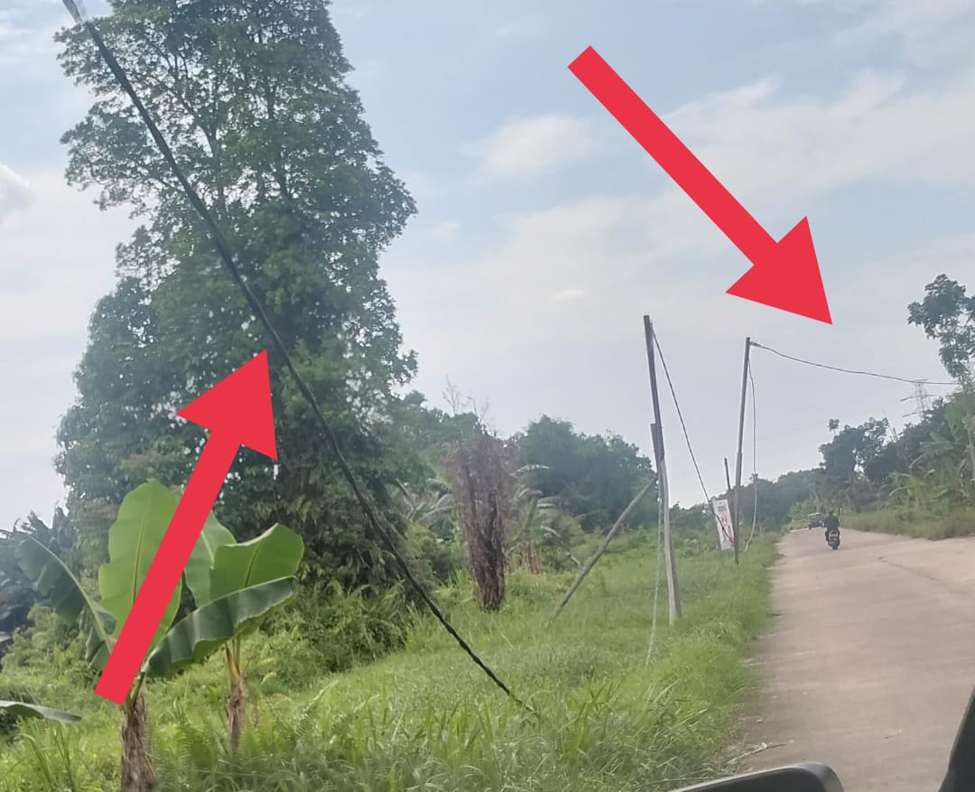 Menurut pantauan tim, kabel tersebut dipasang dari sebuah rumah pemotongan hewan menuju usaha peternakan ayam yang berjarak sekitar 100 meter. Selain menggunakan tiang kayu yang seadanya, kabel juga diikat di pohon tanpa pelindung yang memadai, memunculkan kekhawatiran akan potensi bahaya bagi warga sekitar maupun pengguna jalan.