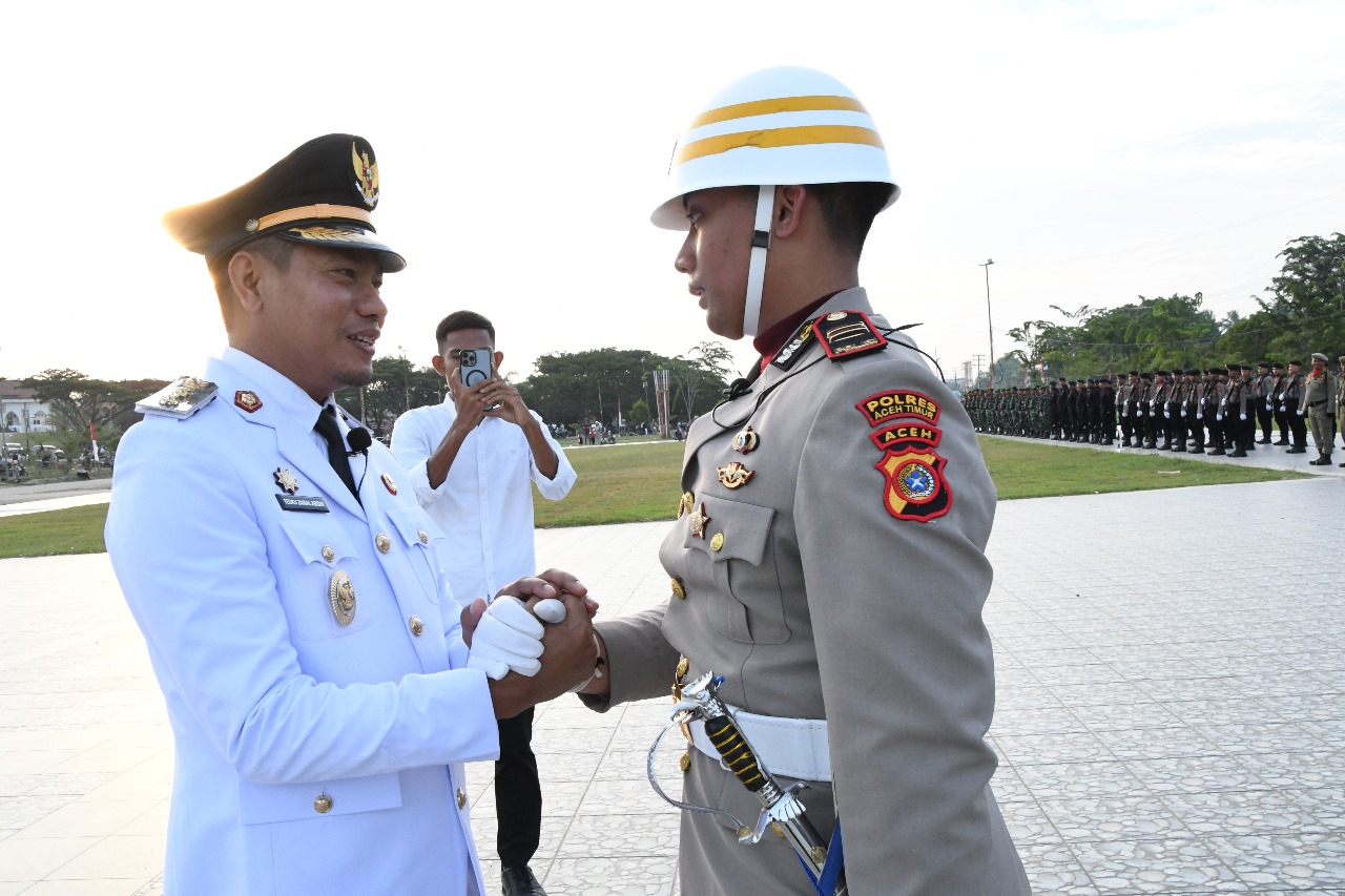Sebelum, meninggalkan lapangan upacara, Wakil Bupati Aceh Timur memberi hormat kepada peserta upacara yang terdiri dari unsur TNI, Polri, Brimob, ASN, LSM, BPBD, Organisasi Kepemudaan, Pelajar dan Pramuka.