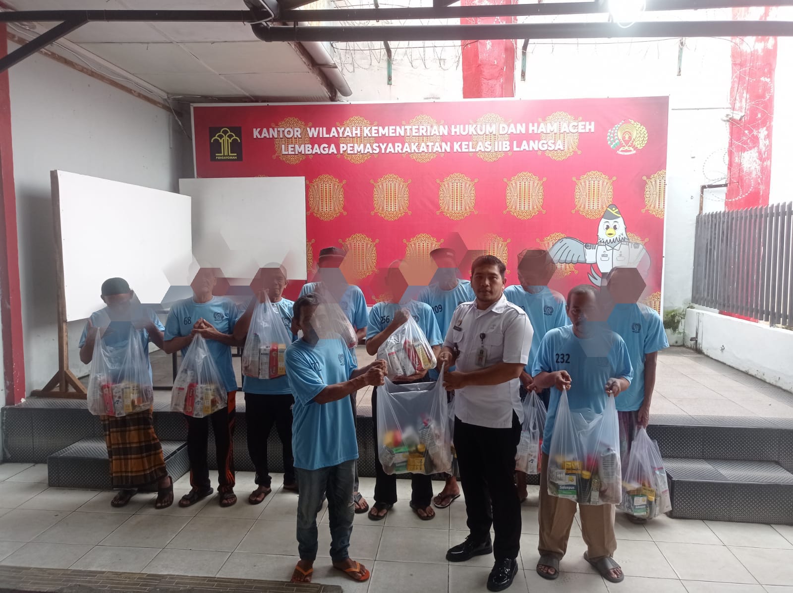 Mewakili Kepala Lembaga Pemasyarakatan Kelas IIB Langsa A. Halim Faisal, Kepala Urusan Umum Meurah Natasya dan Kepala Subseksi Perawatan T. M. Syukran Raden Santoso menyerahkan paket penunjang daya tahan tubuh kepada Warga Binaan Pemasyarakatan Lapas Langsa.