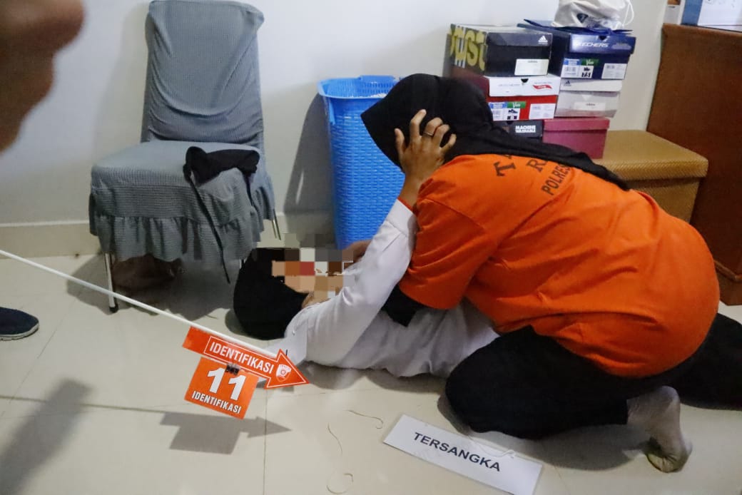 Tersangka berinisial W dibawa ke lokasi TKP untuk memperagakan 16 adegan yang menggambarkan urutan peristiwa pidana tersebut