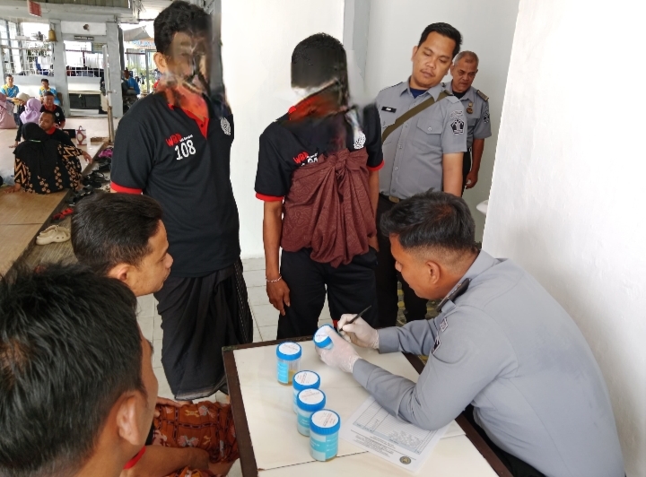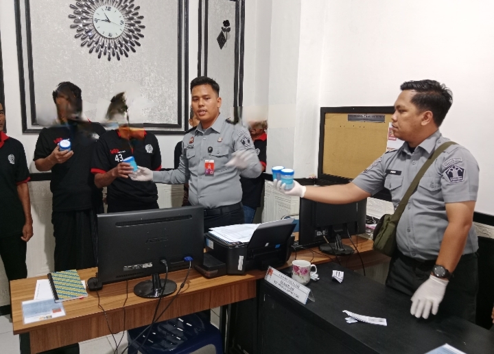 Pelaksanaan tes urine dilakukan dari pejabat struktural, staf dan petugas pengamanan dan juga Warga Binaan Pemasyarakatan (WBP).