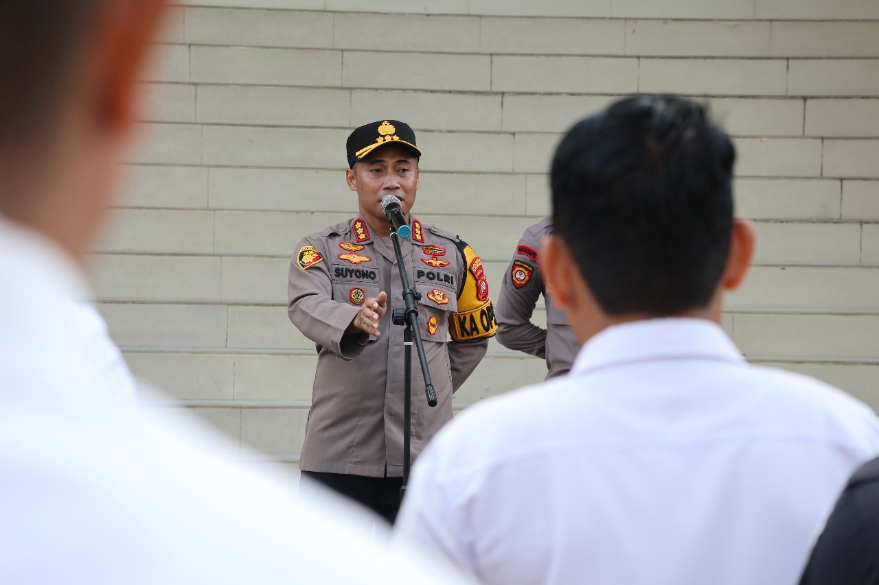 Mediaberitapantau.web.id PONTIANAK — Kapolresta Pontianak yang baru, Kombes Pol Suyono, S.I.K., S.H., M.H., memimpin apel pagi perdana di halaman Mapolresta Pontianak. Apel diikuti oleh Wakapolresta AKBP Hendrawan, S.I.K., M.H., para Pejabat Utama (PJU), para perwira, serta seluruh personel Polresta Pontianak.