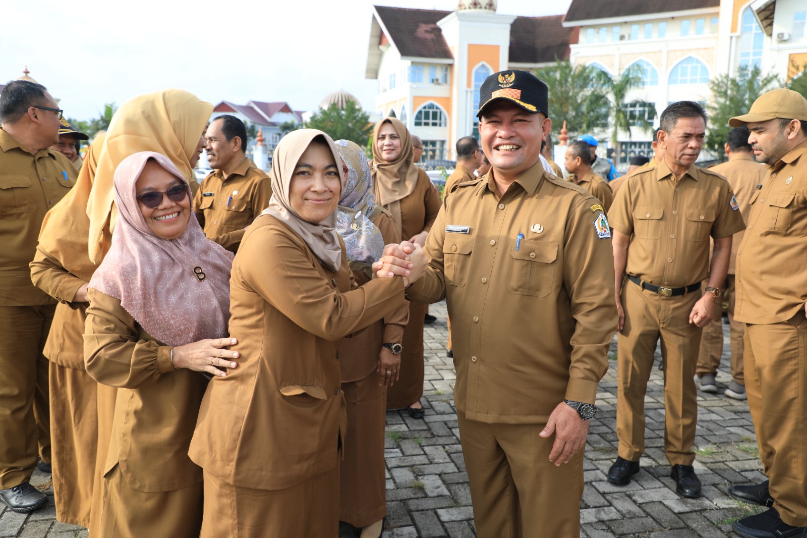 Media Berita Pantau Aceh Utara — Bupati Aceh Utara H Ismail A Jalil, SE, MM, memimpin apel gabungan perdana ASN dan seluruh pejabat jajaran Pemkab Aceh Utara, Selasa, 18 Februari 2025. Dalam apel yang berlangsung di lapangan Landing depan Kantor Bupati, dia mengajak ASN dan pejabat untuk memperbaharui diri di bawah kepemimpinan Bupati – Wakil Bupati yang baru.
