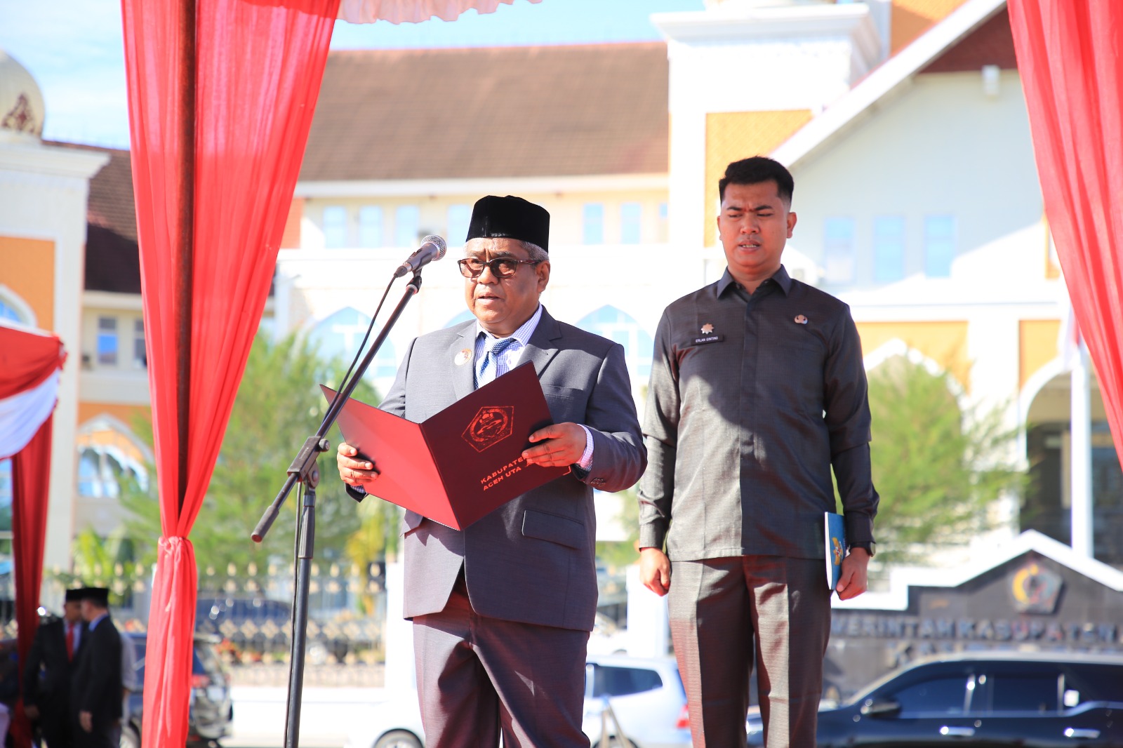Bertindak sebagai pembina upacara adalah Penjabat Bupati Aceh Utara Dr Mahyuzar, MSi. Sedangkan perwira upacara Ainul Hamdi, STr.IP, pemimpin upacara Khairul Ihsan, STr.IP, pembaca Pembukaan UUD ’45 Ade Fikri Haiqal, STr.IP, pembaca pesan-pesan pahlawan Salsa Faradina, STr.IP, dan pembaca Ayat Suci Alquran Tgk M Yanis, SE.