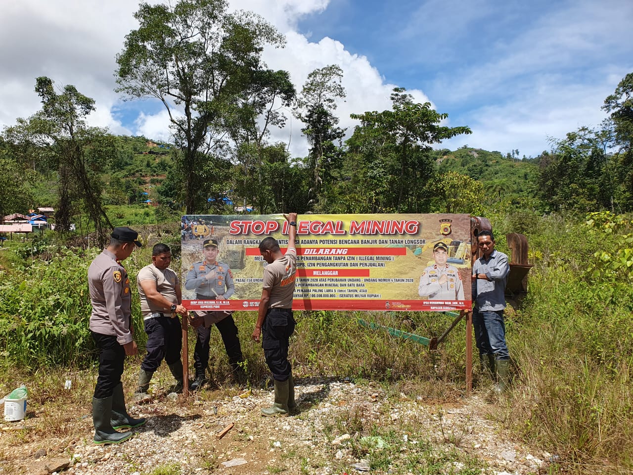 “Selain melaksanakan sosialisasi, kita juga melakukan pemasangan spanduk atau banner tentang imbauan dan larangan aktivitas PETI di beberapa tempat atau titik yang ada aktivitas PETI,” jelas Ipda Muhammad Rizal, SKM, MH.
