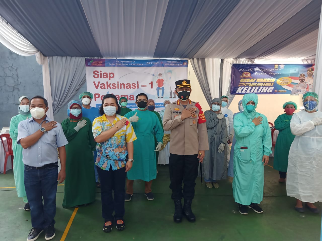 “untuk hari ini kami memberikan vaksinasi kepada warga water garden sebanyak 500 warga yang nantinya akan di lakukan vaksinasi di gerai pelayanan vaksinasi Keliling yang di bantu tim relawan dan tenaga medis yang sudah di siapkan” tutur Kapolres metro Bekasi Kombespol Hendra Gunawan.